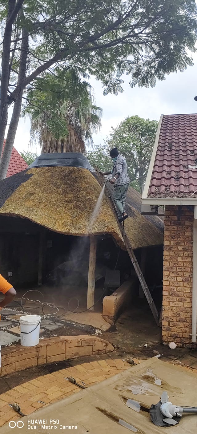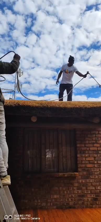 we offer a specialized Thatch Fire-Resistant Spray designed to reduce the risk of fire and improve the safety of your thatched structure. Our high-performance fire retardant is professionally applied to both new and existing thatch roofs, creating a protective barrier that significantly slows the spread of flames in the event of a fire.